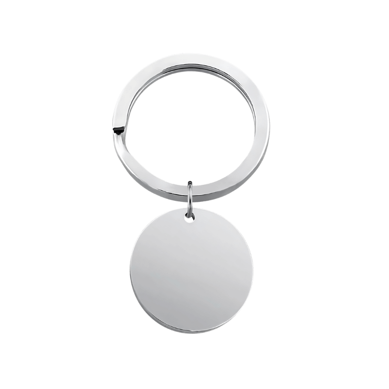 Gefertigt aus poliertem Edelstahl verfügt dieser langlebige Schlüsselanhänger über eine präzise Gravur, die mit der Zeit nicht verblasst. Das kompakte runde Design und der stabile Ring erleichtern das Anbringen an Schlüsseln, Taschen oder Reißverschlüssen und verbinden Alltagstauglichkeit mit persönlichem Stil.